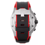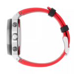 Bracelet: Two-tone black and red rubber strap with stainless steel pin buckle